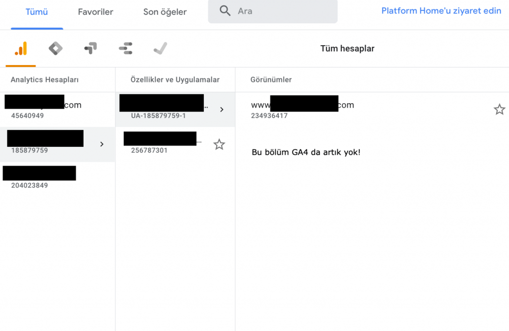 Google Analytics 4 da Mülk ayarlarının içindeki görünüm oluşturma özelliği ortadan kalkıyor. Bunu neden kullanıyorduk kısa bir örnek verecek olursam; şirketinizin içinden sitenize gelen belirli bir trafiği kaldırmak gibi istekleriniz olabiliyordu. Bunu yapmak için yeni bir görünüm oluşturur, dahili trafiği kaldıran bir filtre uygular ve ardından bu görünümü “gerçek” kullanıcılar tarafından site kullanımını anlamak için kullanabilirdiniz.